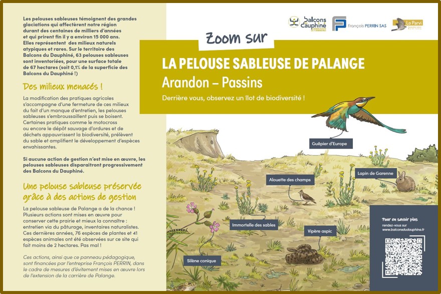 - Communauté de communes des Balcons du Dauphiné, panneau informatif : La communauté de communes des Balcons du Dauphiné, sur l’Ile Crémieu, s’engage pour préserver les pelouses sableuses